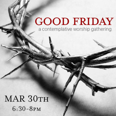 Pastor T. C. will lead a contemplative worship gathering at the Moores’ home to mark Good Friday. Email Pastor T. C. for directions: TC @ RootsCov dot org